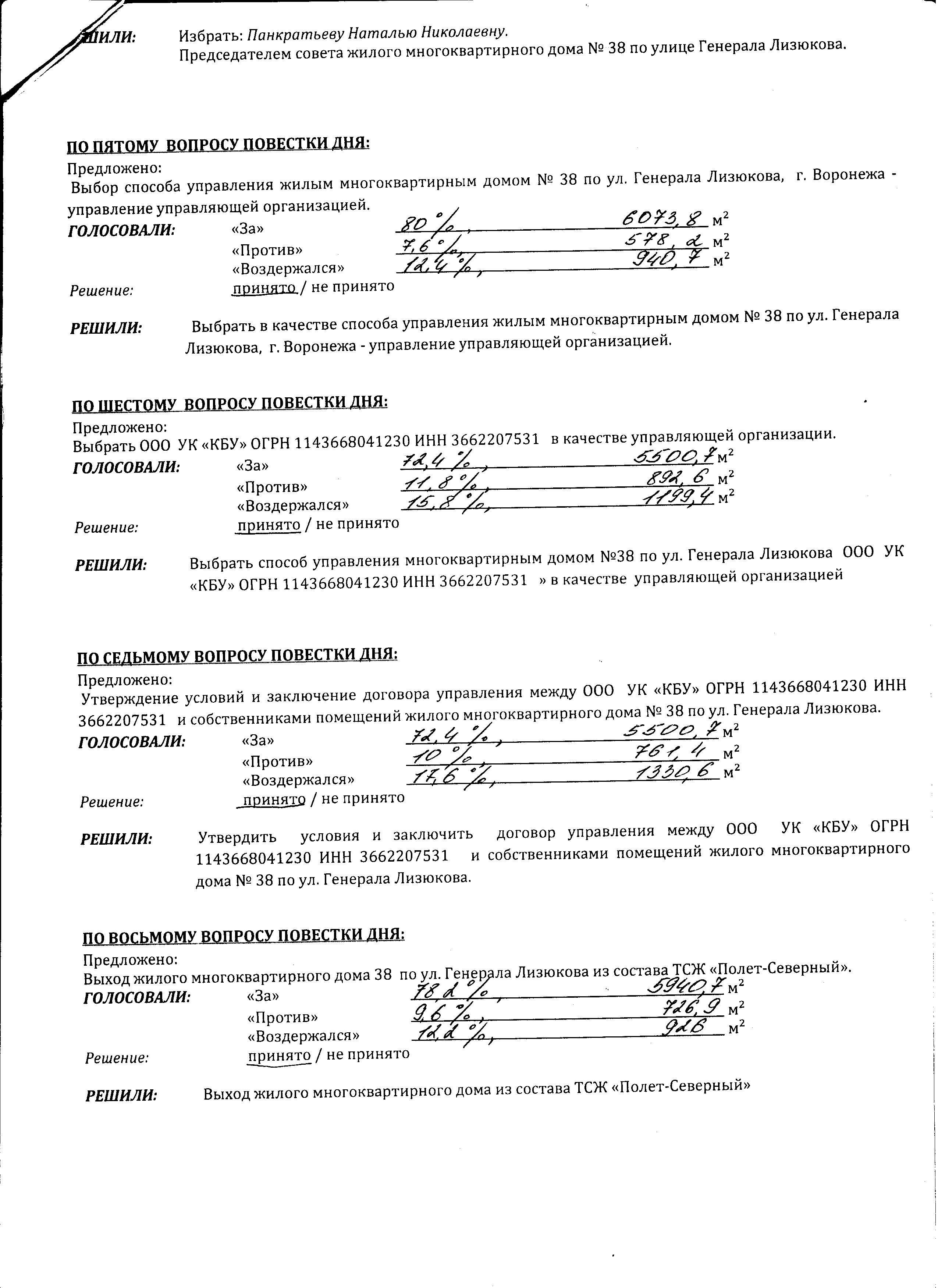 По результатам, проведенного собрания, составлен протокол общего собрания. Основным его достижением по праву можно считать избрание единственного легитимного исполнительного органа управления нашего дома - Совета дома.