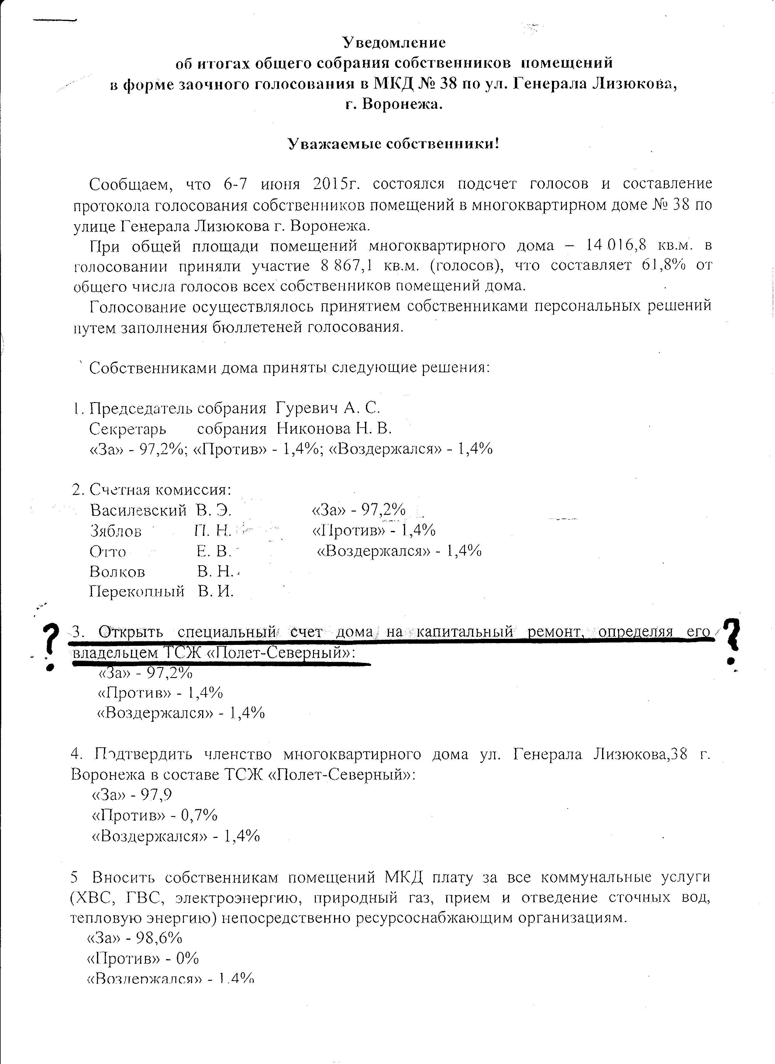 Возникает вопрос: " Действительно ли многие осознанно подписались за то, чтобы переводить деньги на капитальный ремонт нашего дома в ТСЖ "Полет - Северный"?